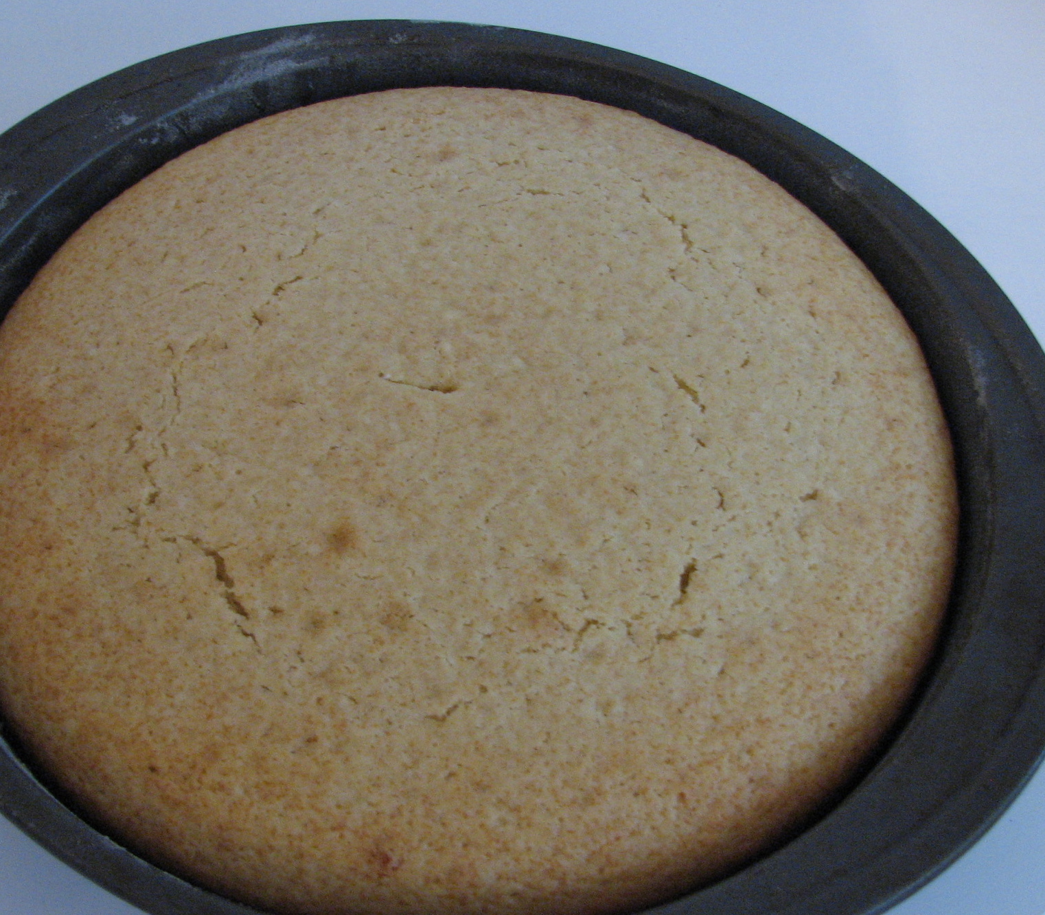 Pre-heat the oven to 350ºF. Coat the sides and bottom of a 10 inch cake pan with butter. Lightly dust with flour, and set aside.