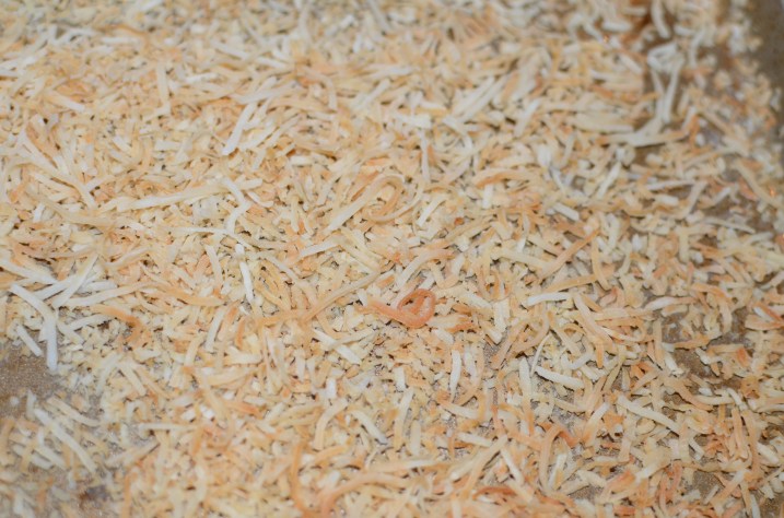 Preheat the oven to 300. Spread the 1 cup of the coconut onto a cookie sheet or pan, and toast it until golden brown. 8-10 minutes.