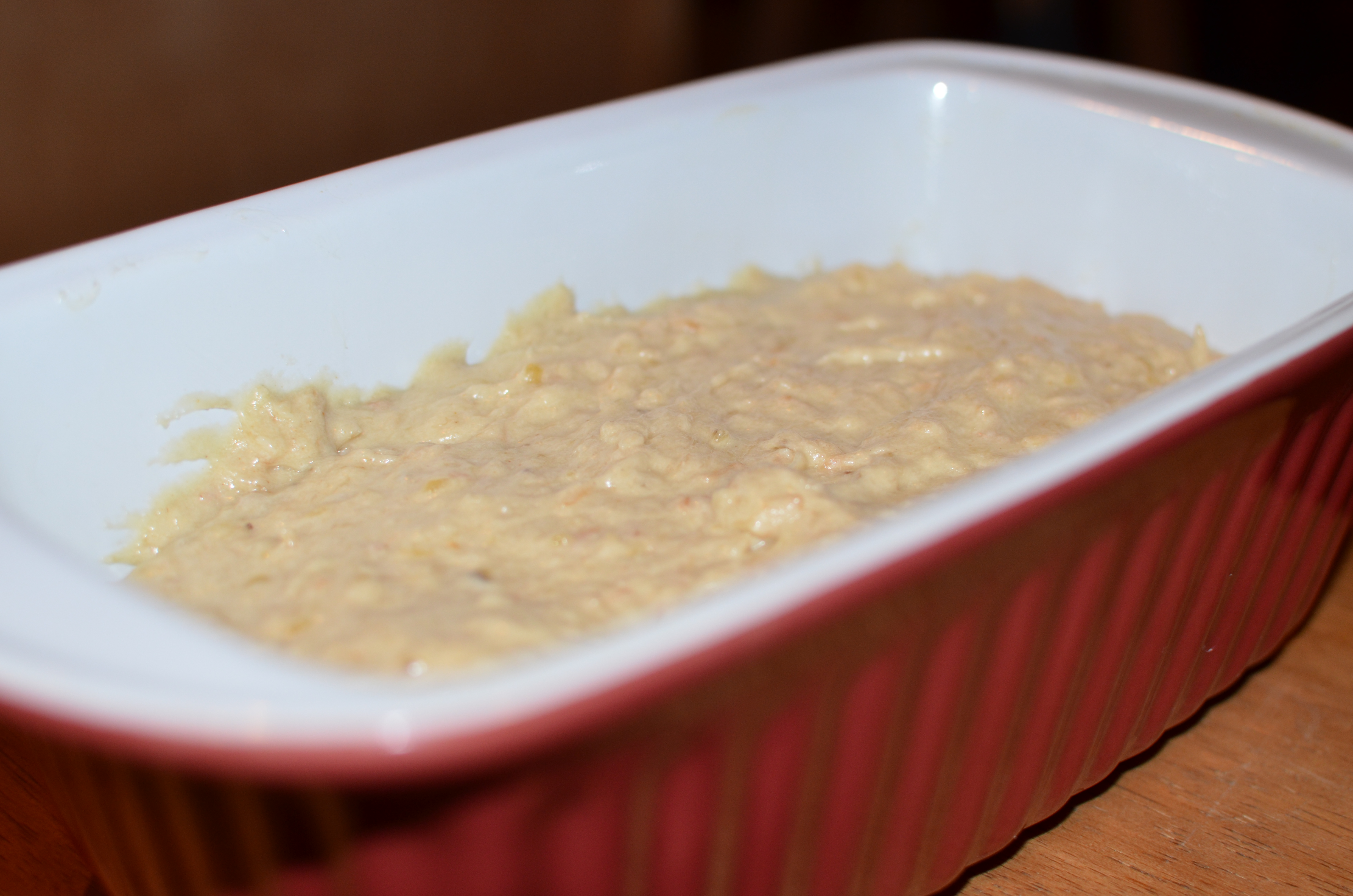 Pour the batter into the buttered loaf pan