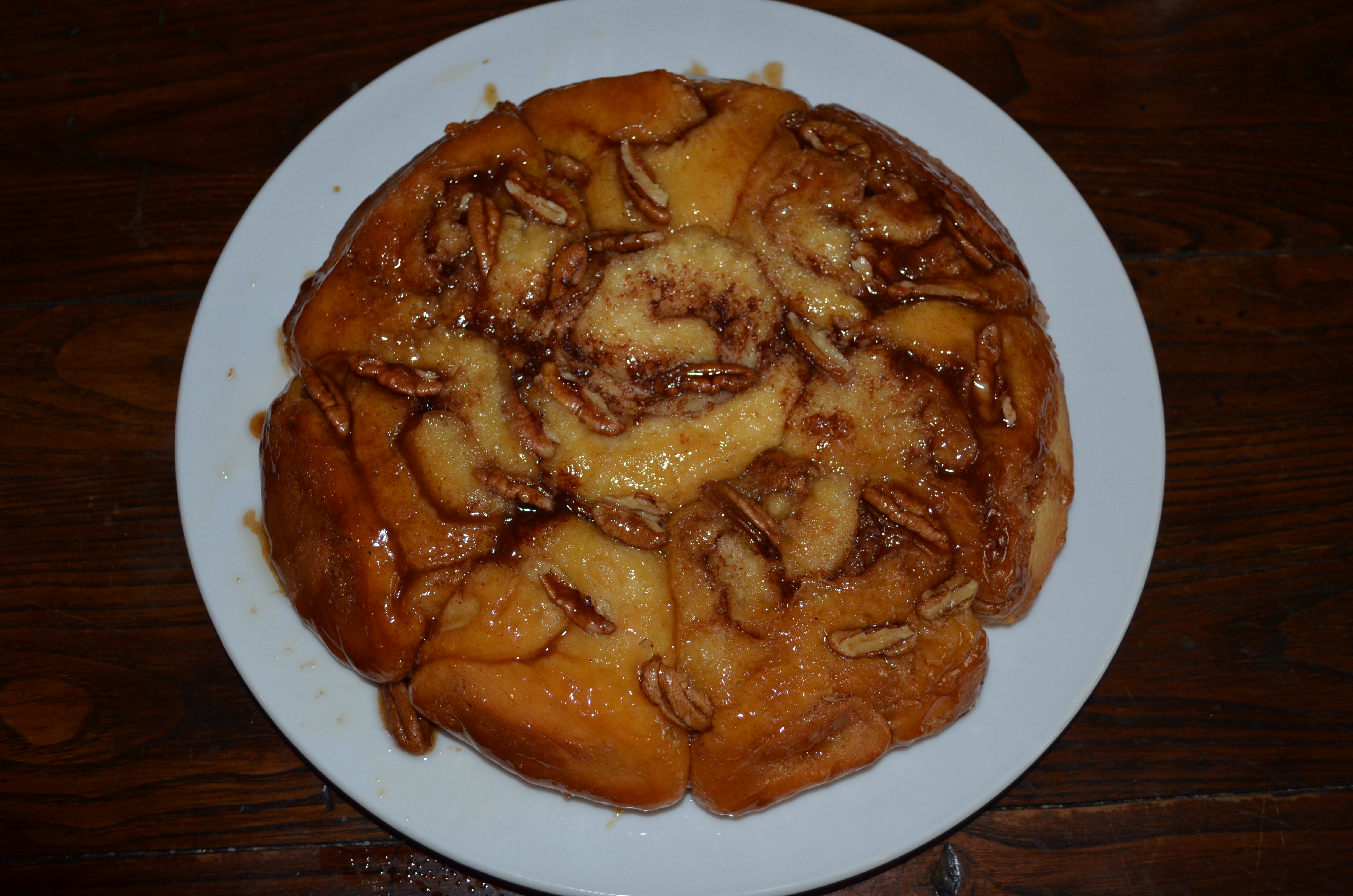 Bake for about 40 minutes, or until golden brown and well set in the center. While still hot, run a knife around the inside of the pan to release the caramel rolls, and invert immediately onto a serving dish. If you let them set too long they will stick to the pan and be difficult to turn out.